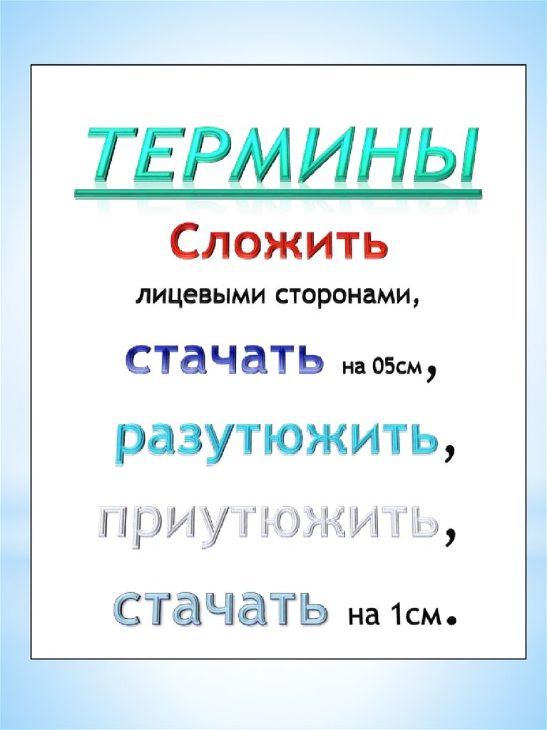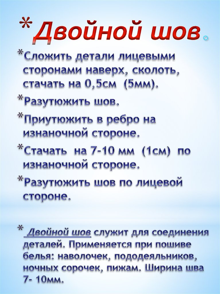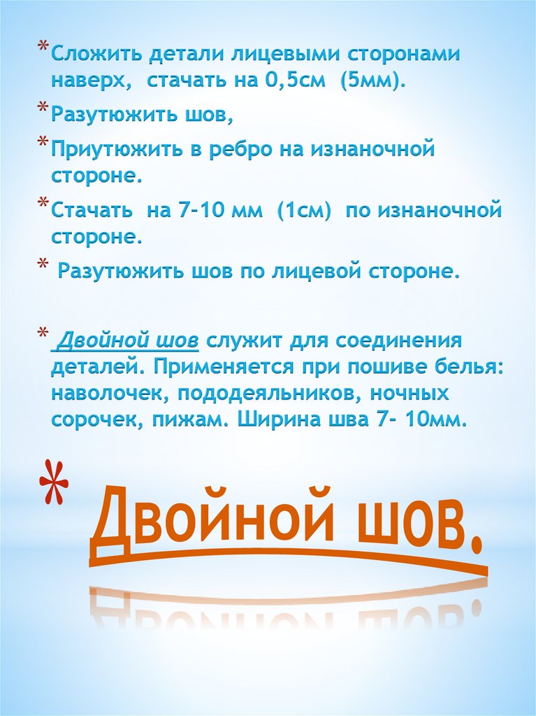 * Сложить детали лицевыми сторонаминаверх, стачать на 0,5см (5мм).