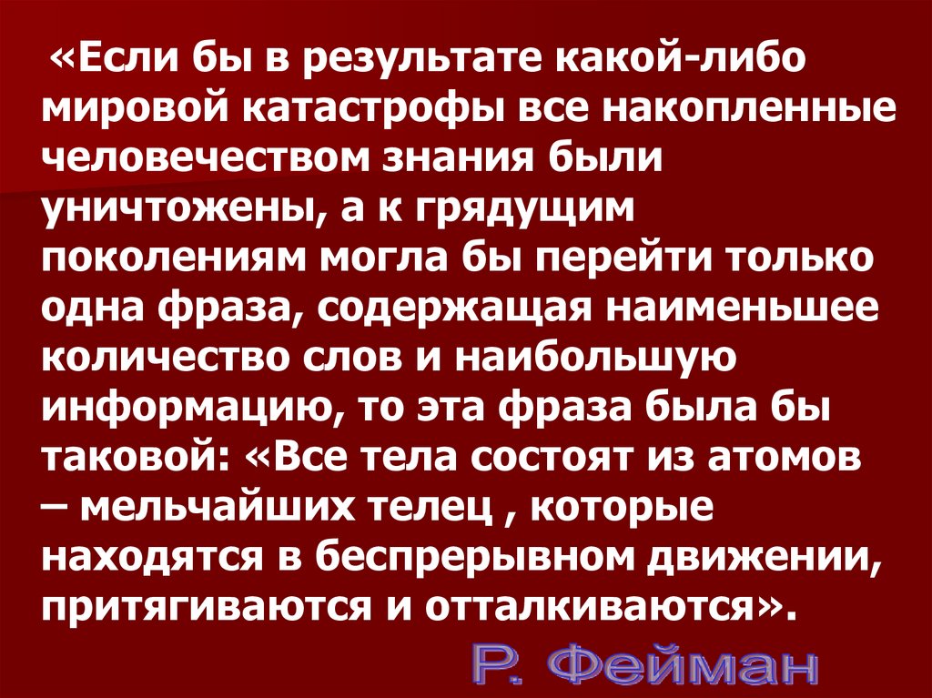 таковой: «Все тела состоят из атомов