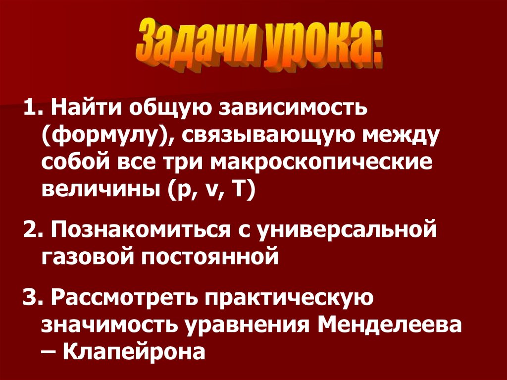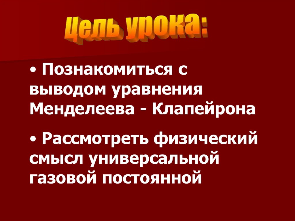 • Познакомиться свыводом уравнения