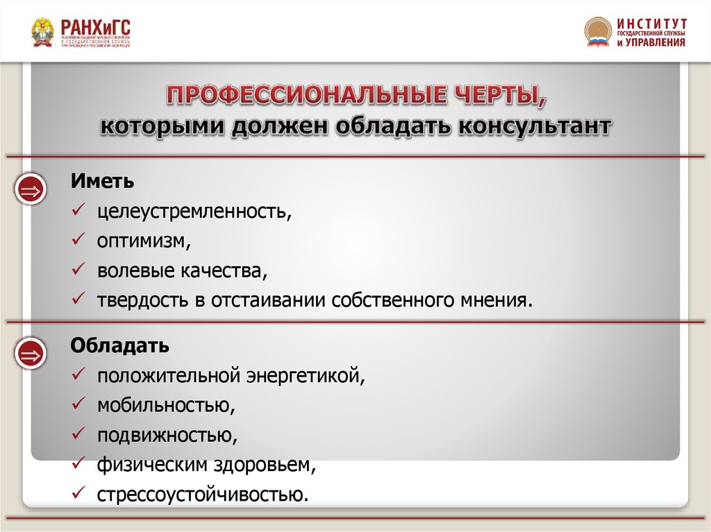 объективной манере; самоконтроль во всех ситуациях;