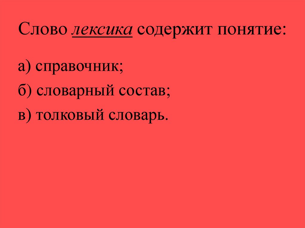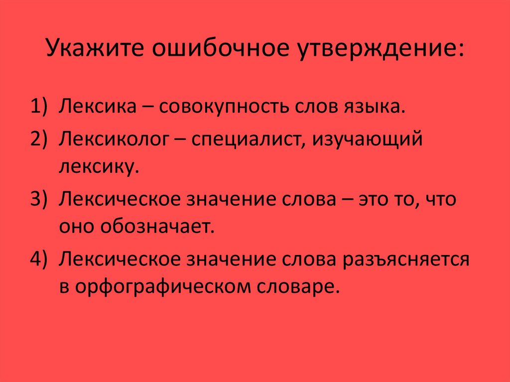 Укажите ошибочное утверждение:1) Лексика – совокупность слов языка.