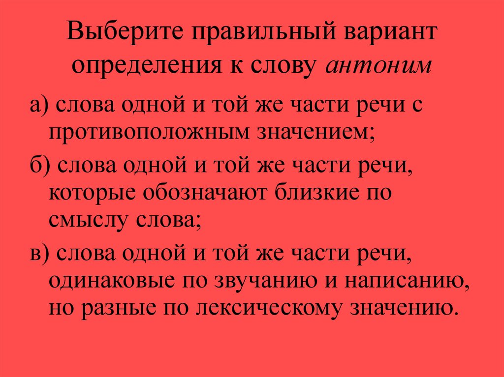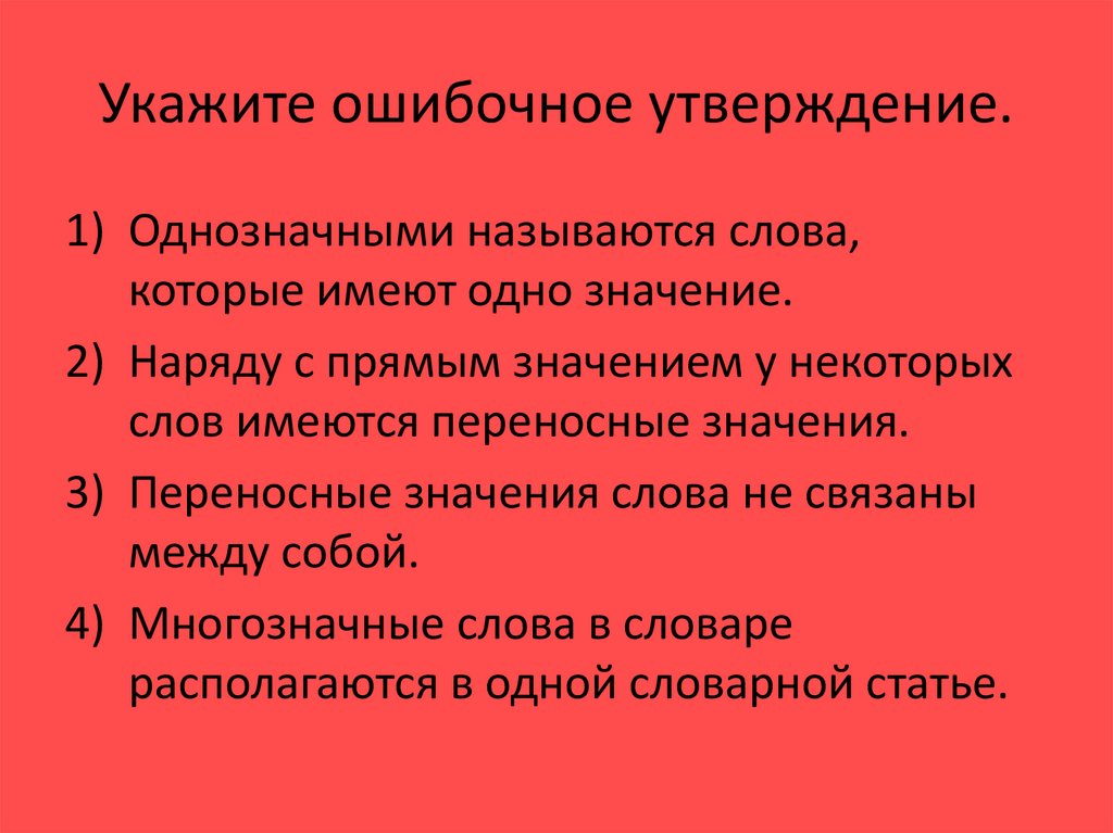 Укажите ошибочное утверждение.1) Однозначными называются слова,