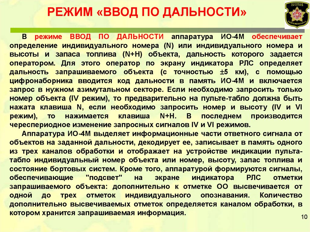 режимах запроса. Аппаратура используется в IV и VI режимах VII