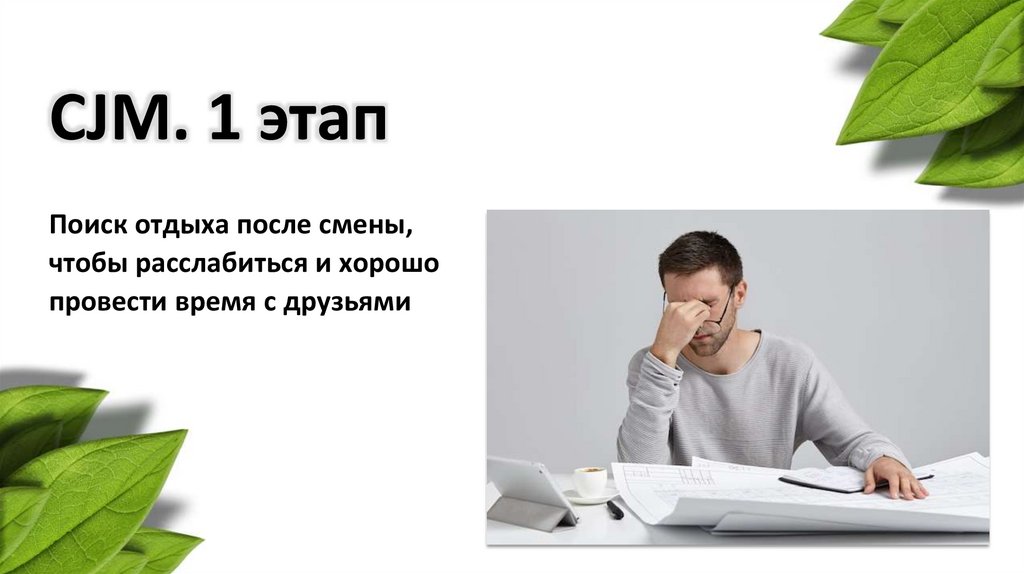 CJM. 1 этапПоиск отдыха после смены,