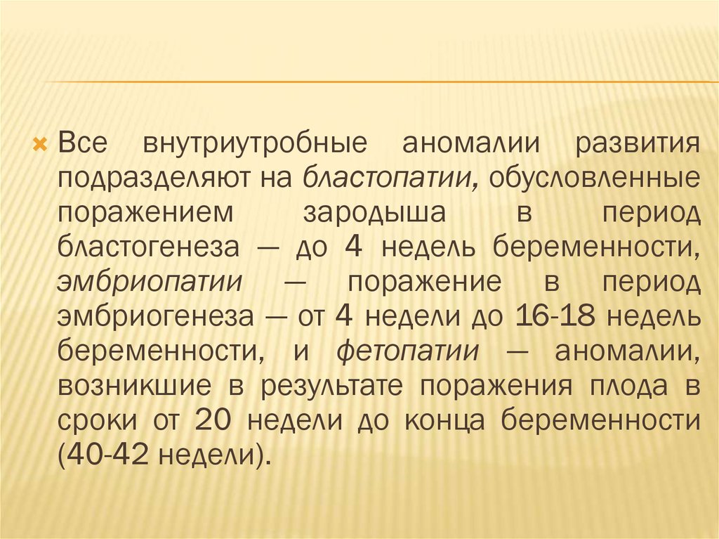 Все внутриутробные аномалии развитияподразделяют на бластопатии, обусловленные