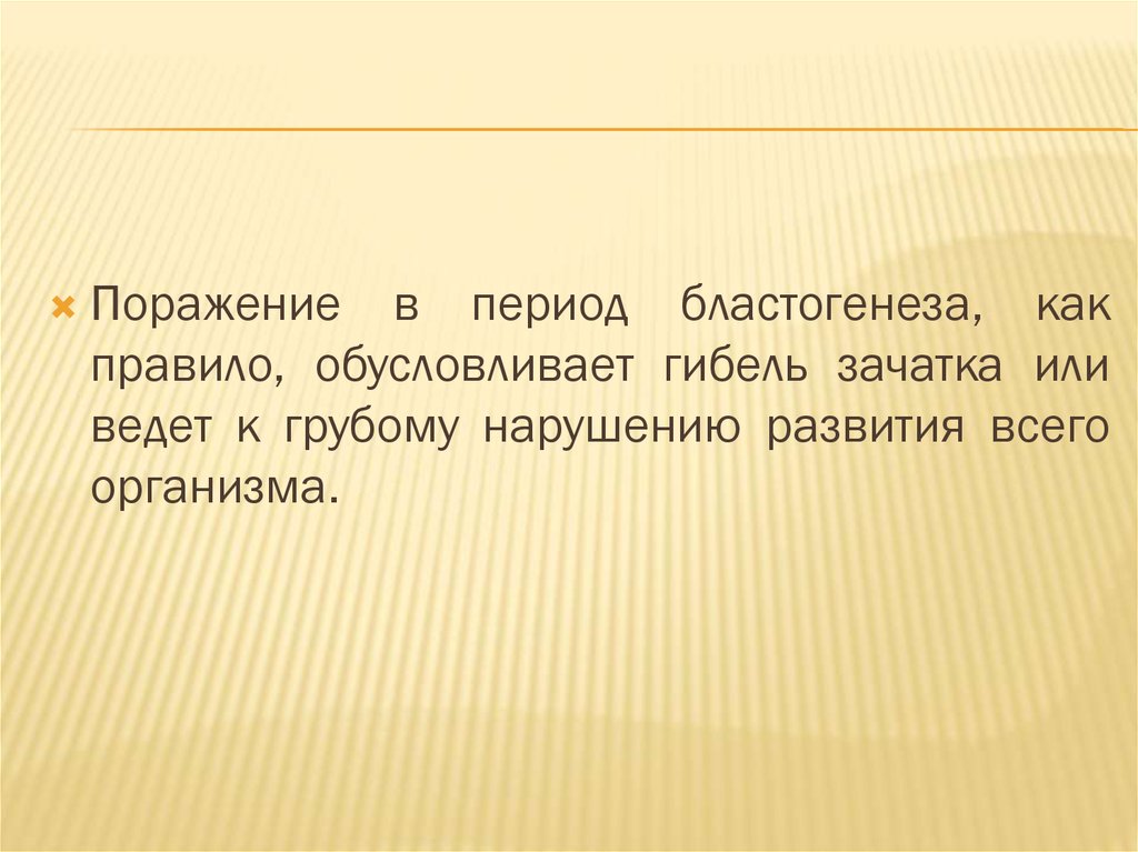 Поражение в период бластогенеза, какправило, обусловливает гибель зачатка или