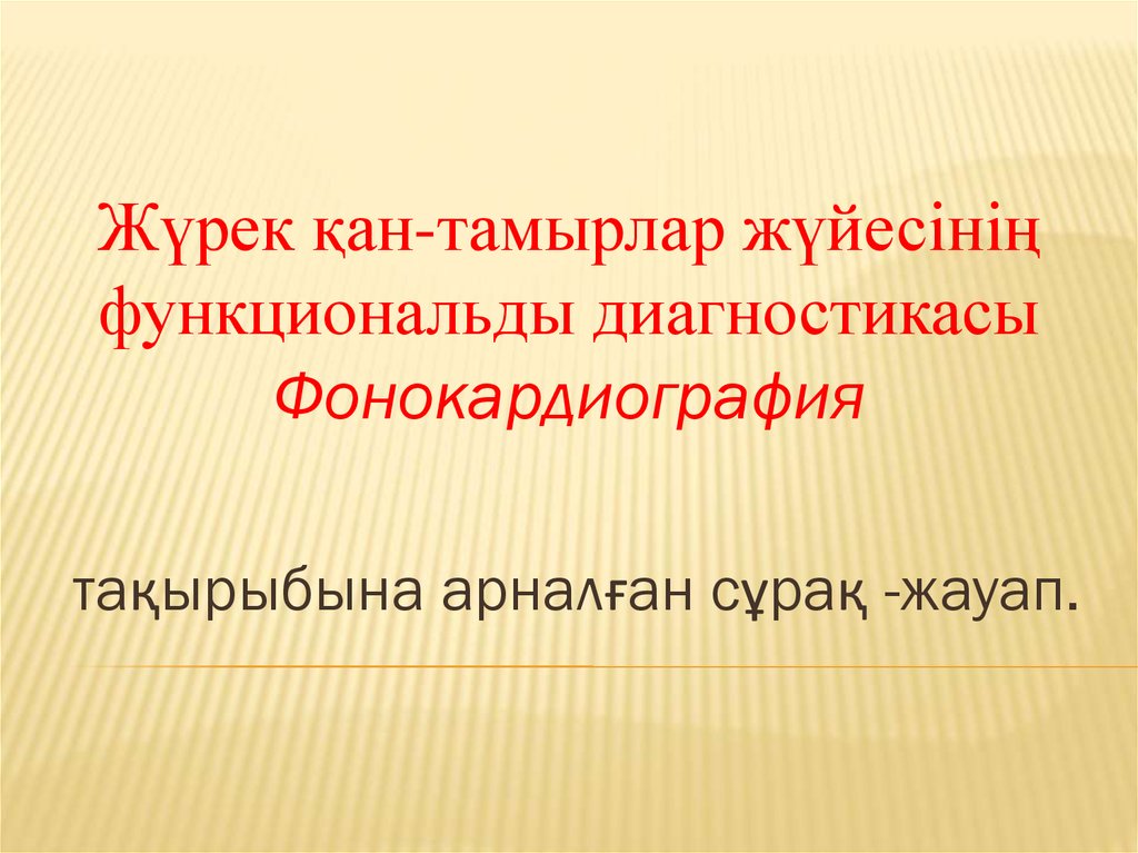 Жүрек қан-тамырлар жүйесініңфункциональды диагностикасы
