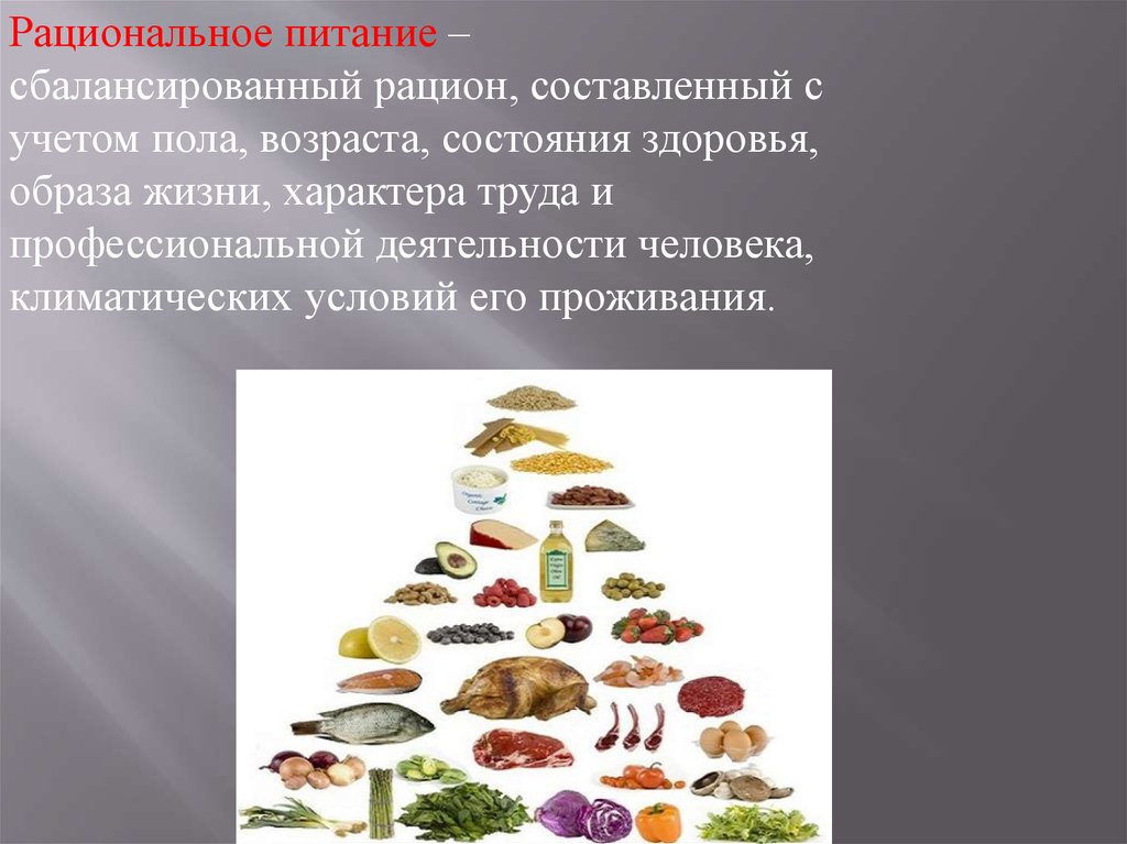Рациональное питание –сбалансированный рацион, составленный с