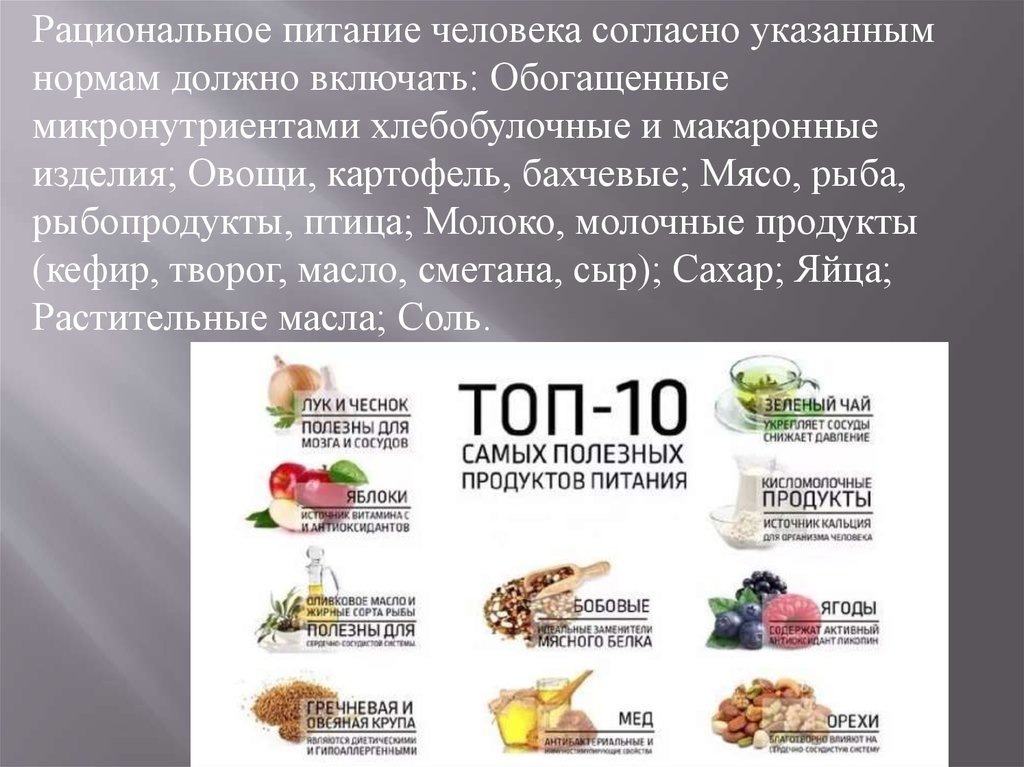 Рациональное питание человека согласно указаннымнормам должно включать: Обогащенные