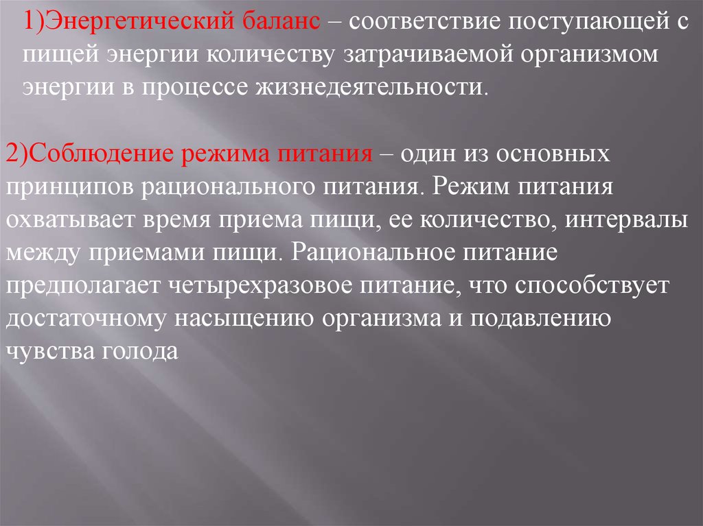 принципов рационального питания. Режим питания