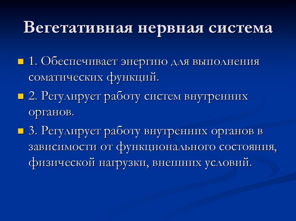 Вегетативная нервная система1. Обеспечивает энергию для выполнения