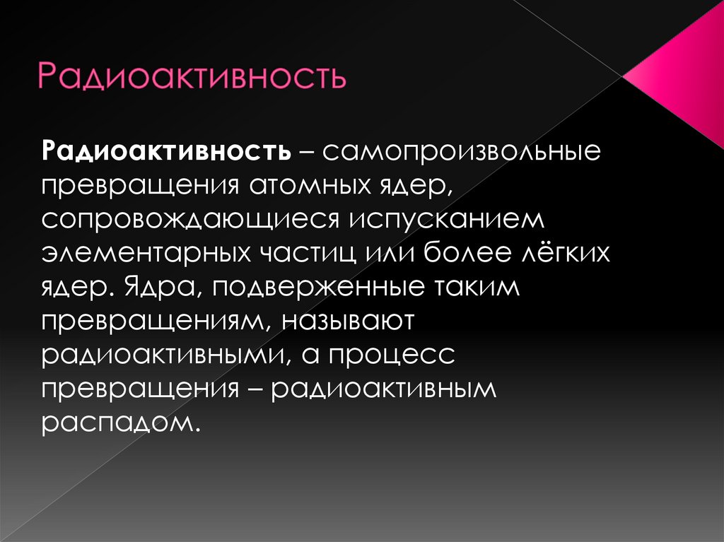 Радиоактивность – самопроизвольные превращения атомных ядер