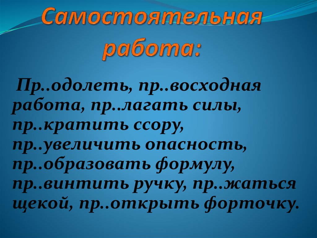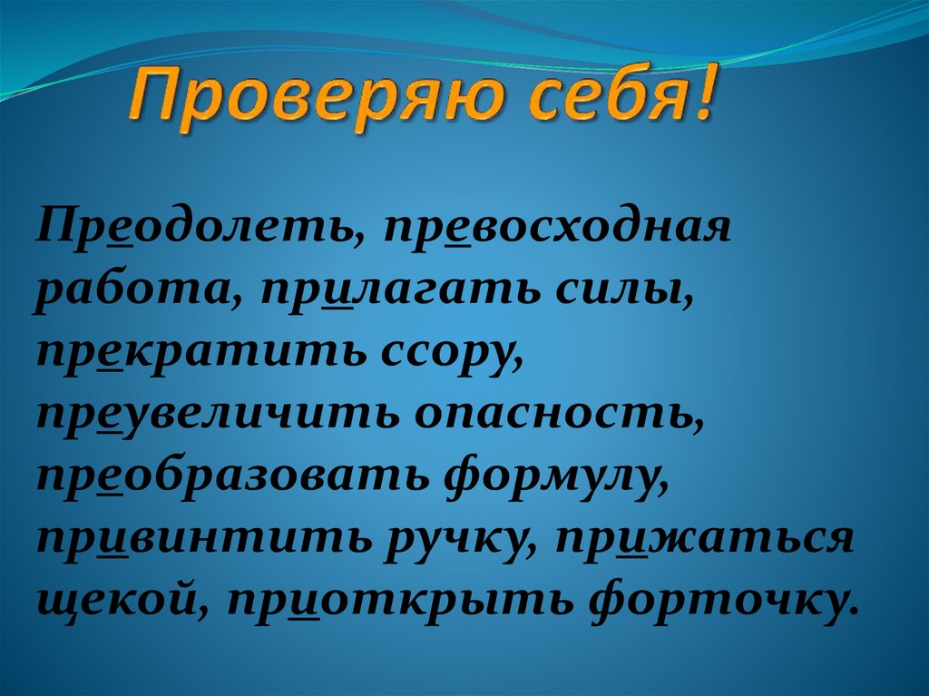 Пр..одолеть, пр..восходнаяработа, пр..лагать силы,