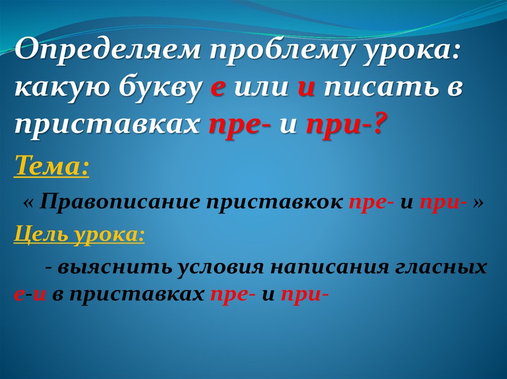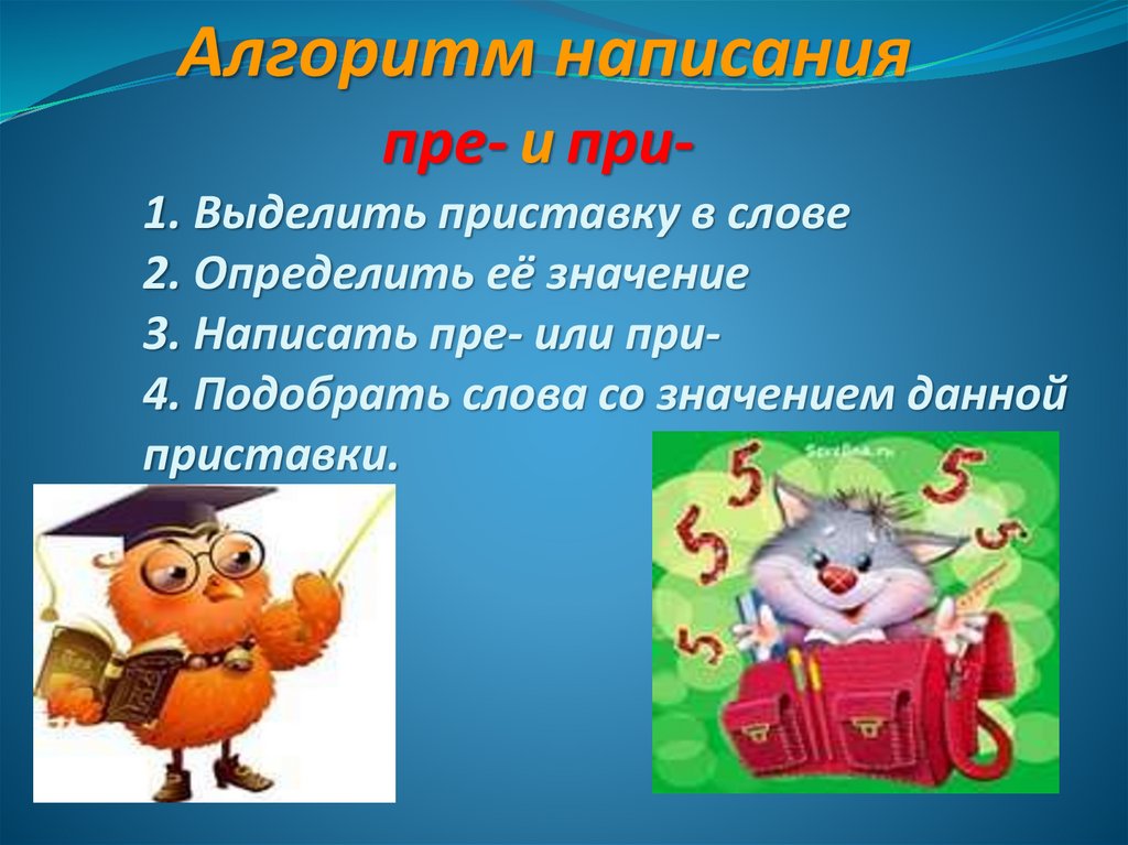 Алгоритм написанияпре- и при1. Выделить приставку в слове