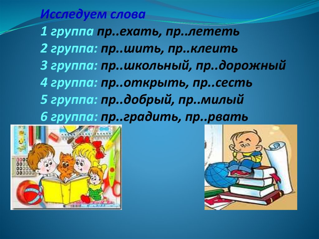 Исследуем слова1 группа пр..ехать, пр..лететь
