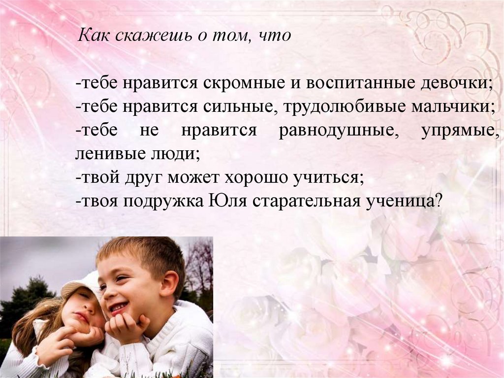 Как скажешь о том, что-тебе нравится скромные и воспитанные девочки;