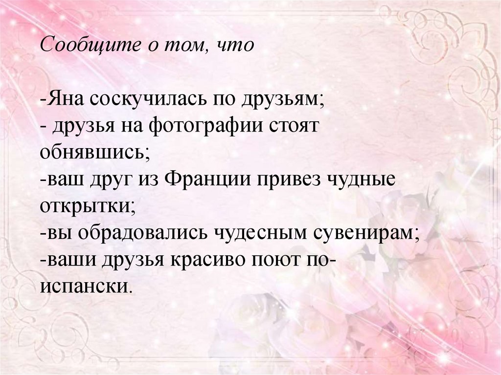 Сообщите о том, что-Яна соскучилась по друзьям;