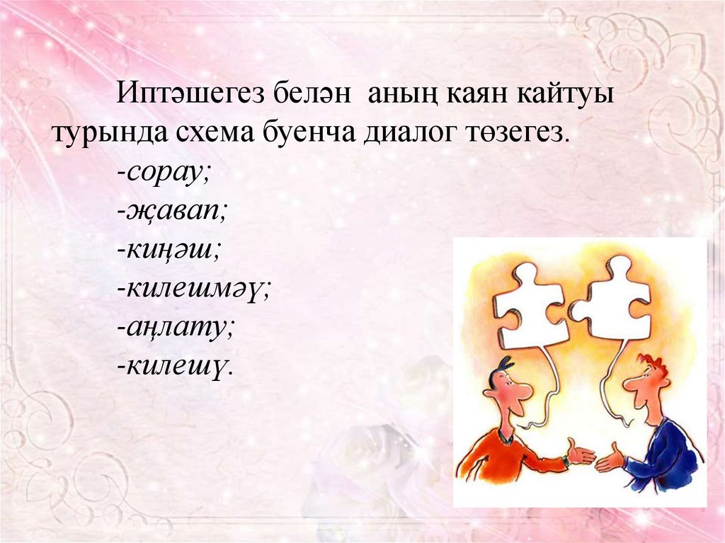 Иптәшегез белән аның каян кайтуытурында схема буенча диалог төзегез.