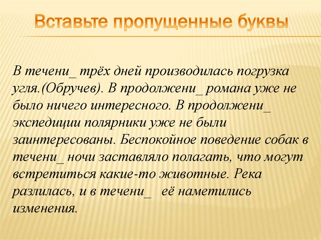 В течени_ трёх дней производилась погрузкаугля.(Обручев). В продолжени_ романа уже не