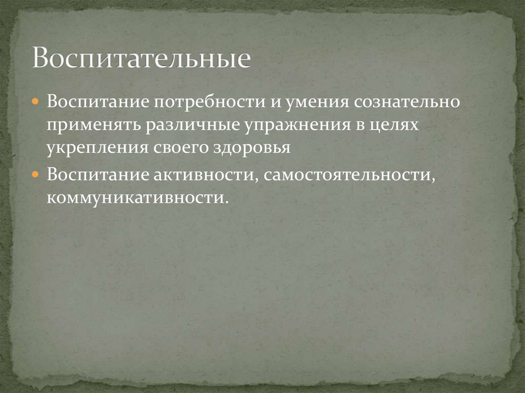 Воспитание потребности и умения сознательноприменять различные упражнения в целях