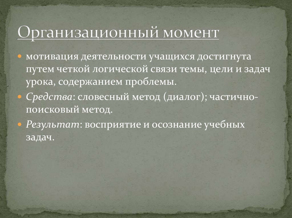 Средства: словесный метод (диалог); частичнопоисковый метод.