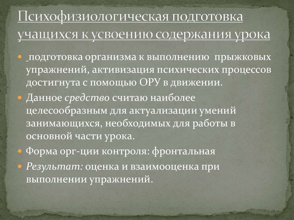 подготовка организма к выполнению прыжковыхупражнений, активизация психических процессов