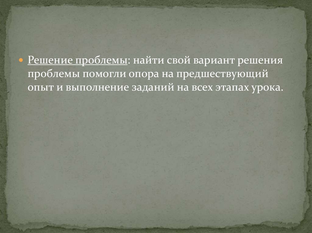 Решение проблемы: найти свой вариант решенияпроблемы помогли опора на предшествующий