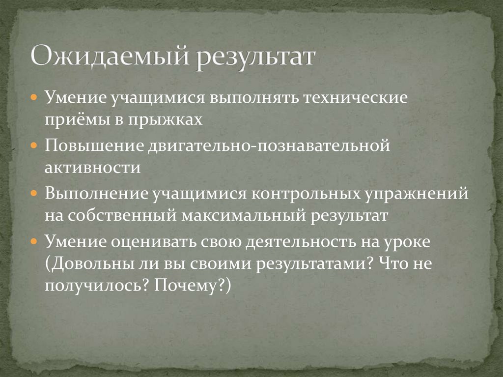 Умение учащимися выполнять техническиеприёмы в прыжках