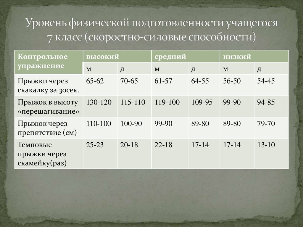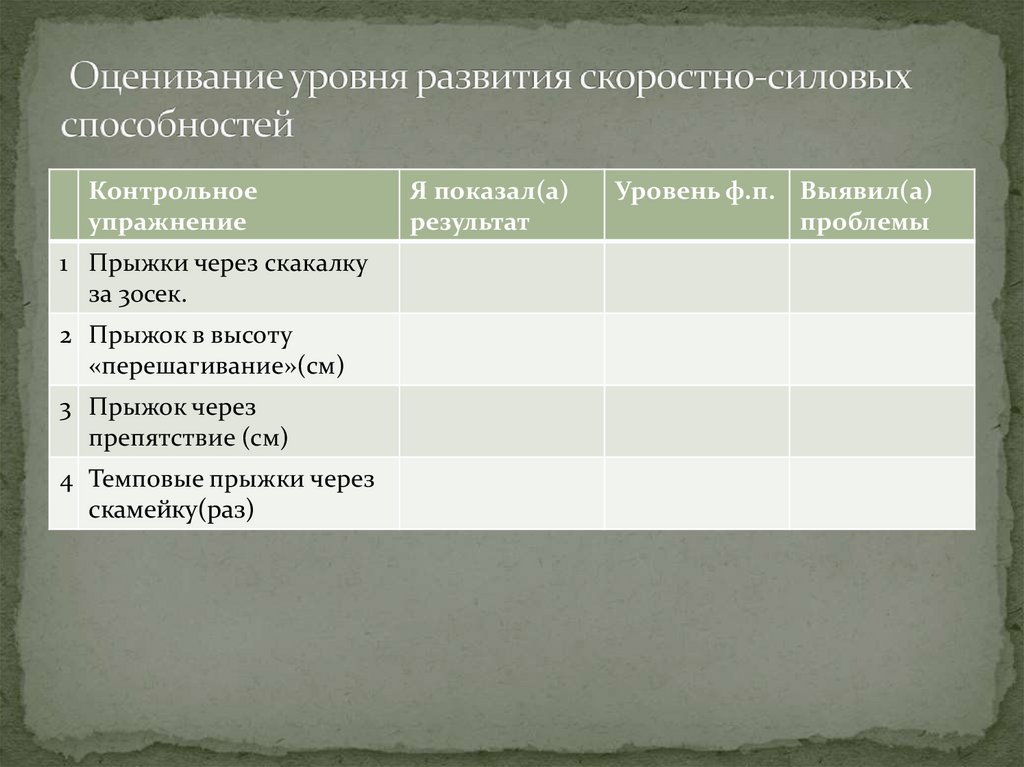 продолжением урока: оценить свои скоростносиловые способности и определить уровень ф.п.
