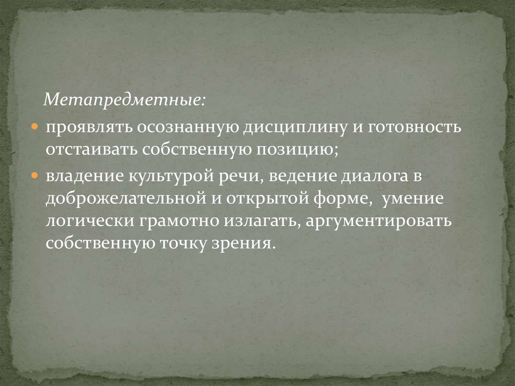 Метапредметные:проявлять осознанную дисциплину и готовность