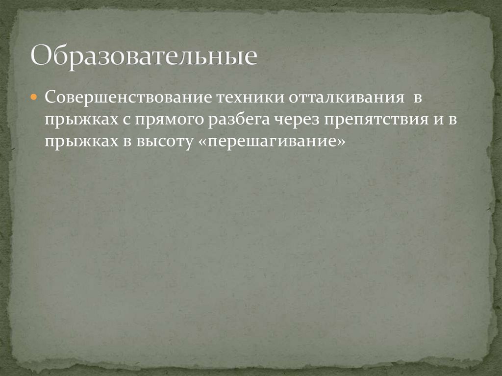 Совершенствование техники отталкивания впрыжках с прямого разбега через препятствия и в