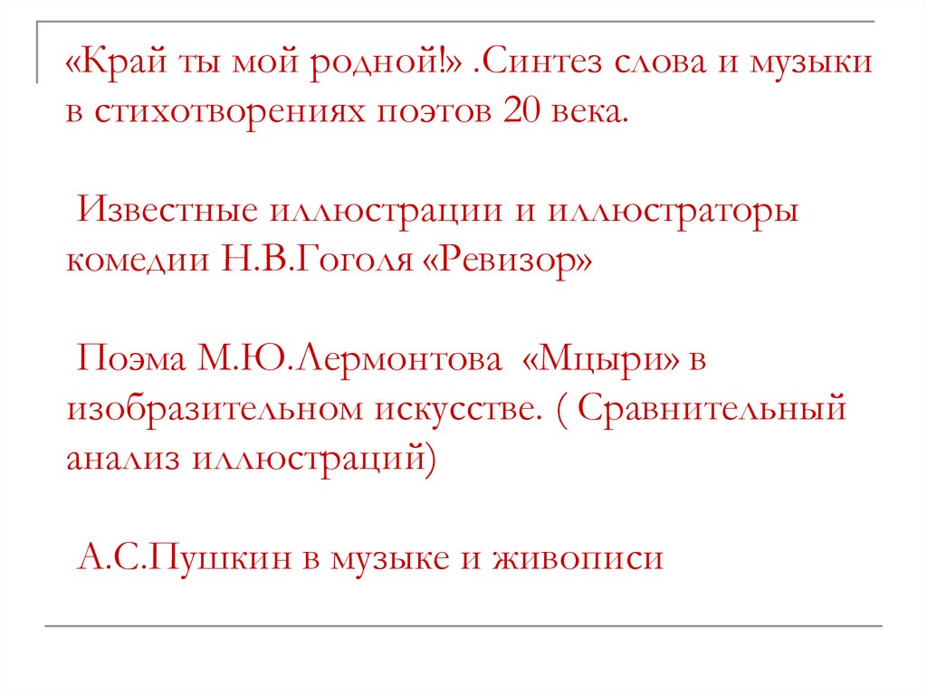 «Край ты мой родной!» .Синтез слова и музыкив стихотворениях поэтов 20 века.
