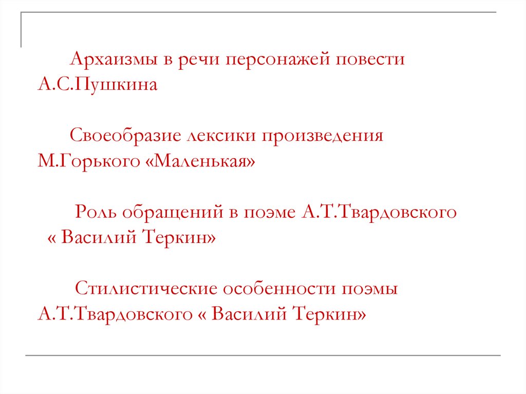 Архаизмы в речи персонажей повестиА.С.Пушкина