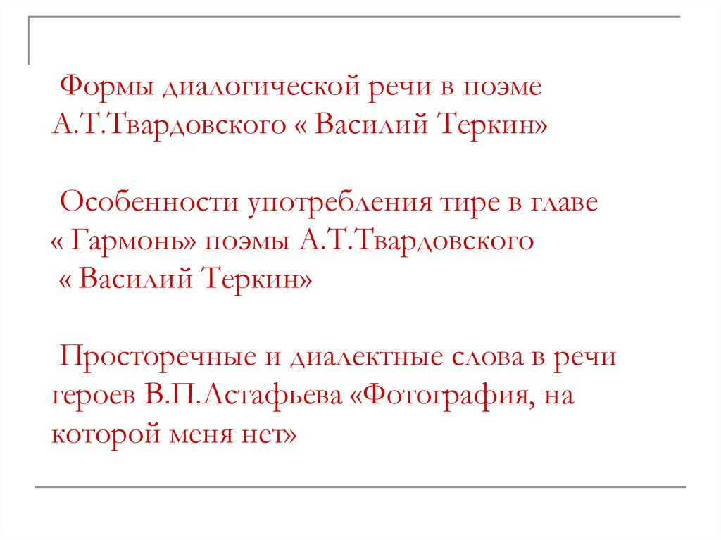 Формы диалогической речи в поэмеА.Т.Твардовского « Василий Теркин»