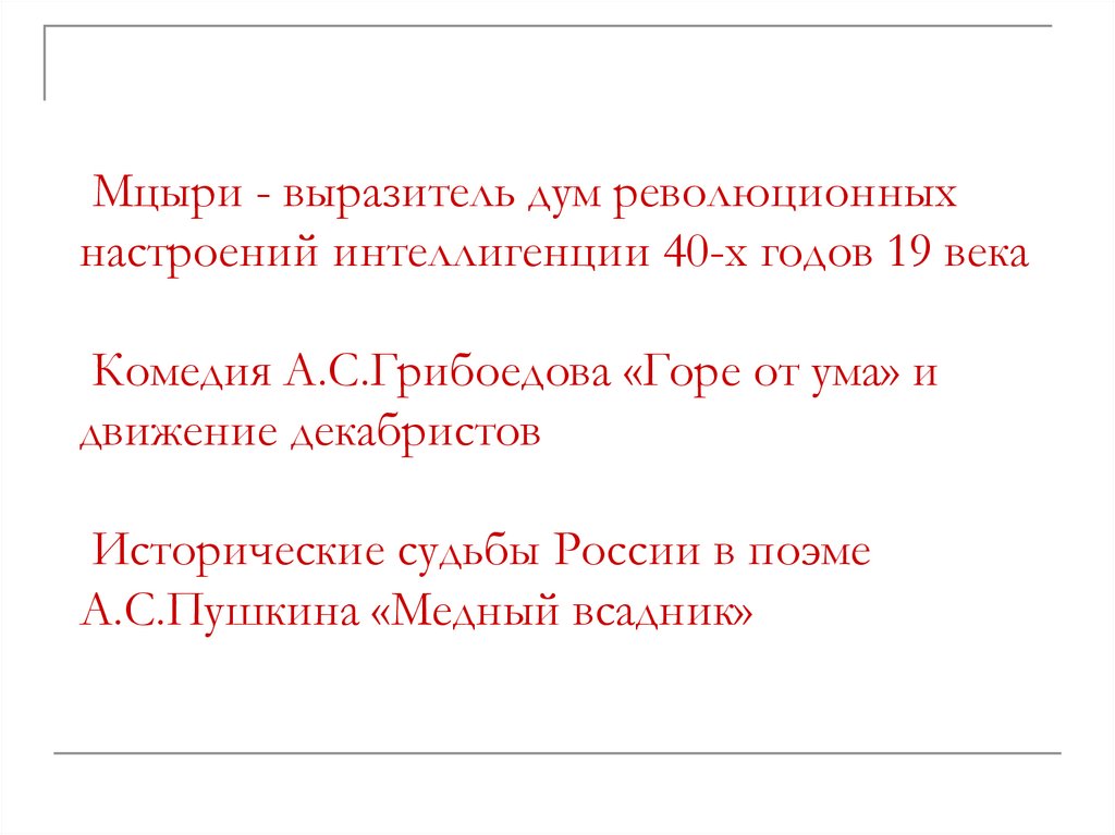 Мцыри - выразитель дум революционныхнастроений интеллигенции 40-х годов 19 века