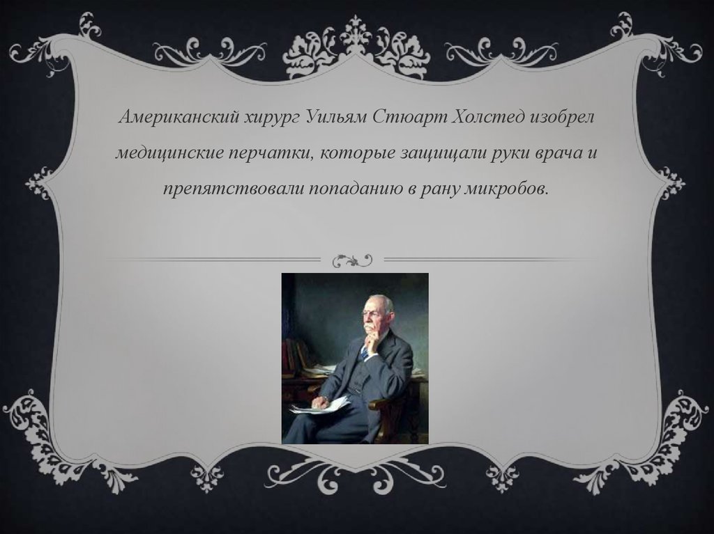 Американский хирург Уильям Стюарт Холстед изобрелмедицинские перчатки, которые защищали руки врача и