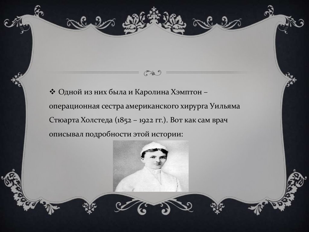Одной из них была и Каролина Хэмптон –операционная сестра американского хирурга Уильяма
