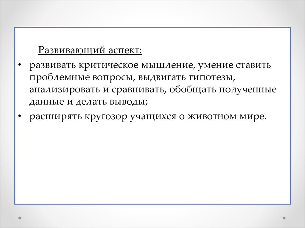 Развивающий аспект:• развивать критическое мышление, умение ставить