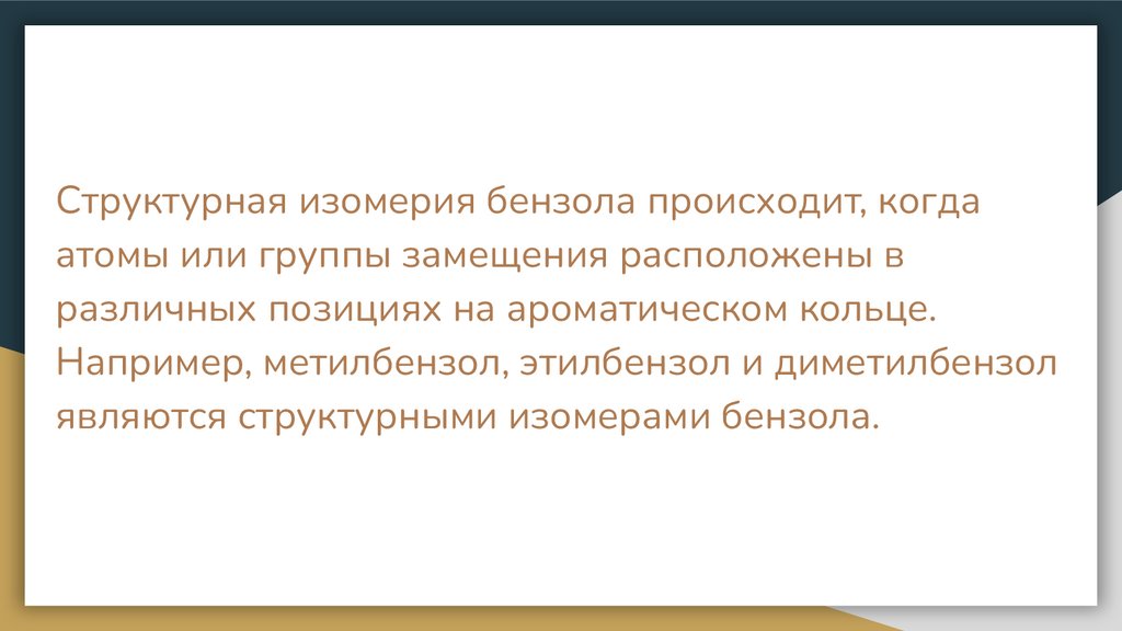 Структурная изомерия бензола происходит, когдаатомы или группы замещения расположены в
