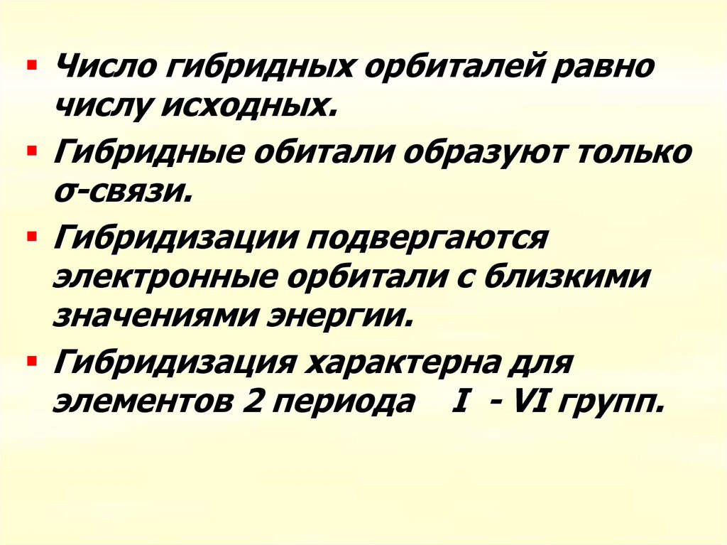 Число гибридных орбиталей равночислу исходных.