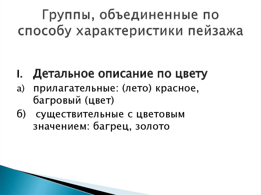 I. Детальное описание по цветуa) прилагательные: (лето) красное,
