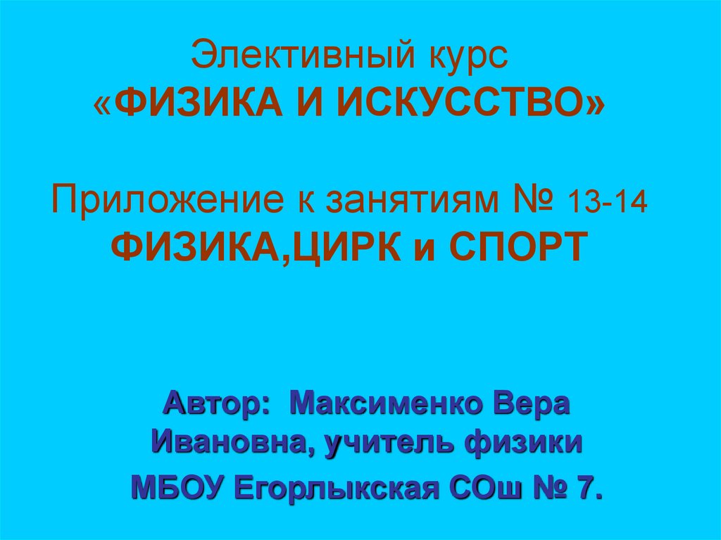 1. Элективный курс «ФИЗИКА И ИСКУССТВО» Приложение к занятиям № 13-14 ФИЗИКА,ЦИРК и СПОРТ