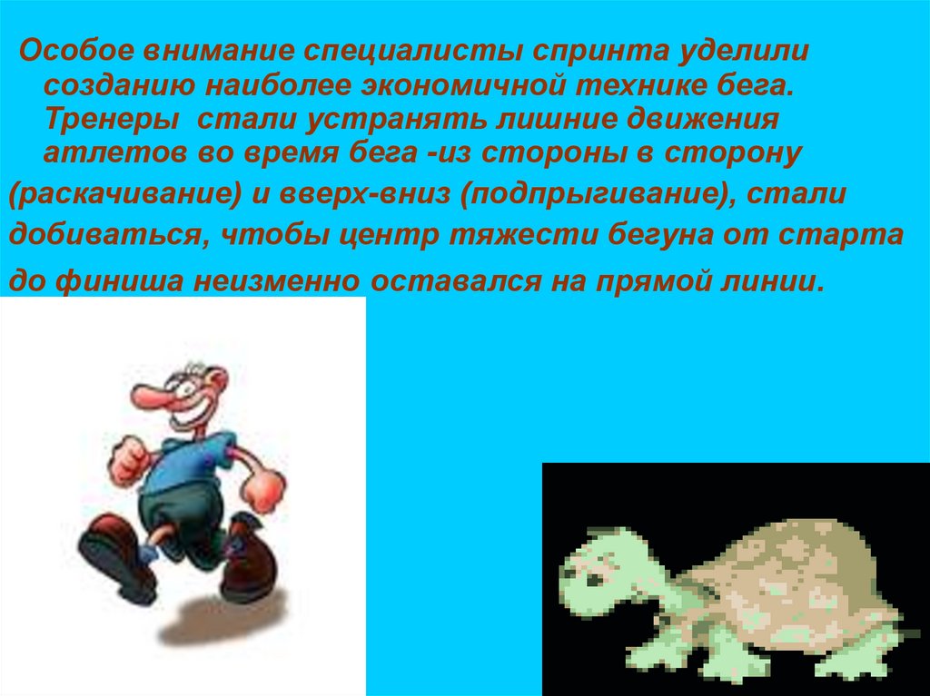 Особое внимание специалисты спринта уделилисозданию наиболее экономичной технике бега.