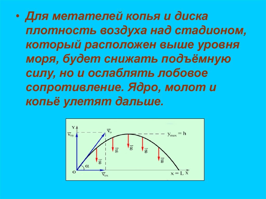 • Для метателей копья и дискаплотность воздуха над стадионом,