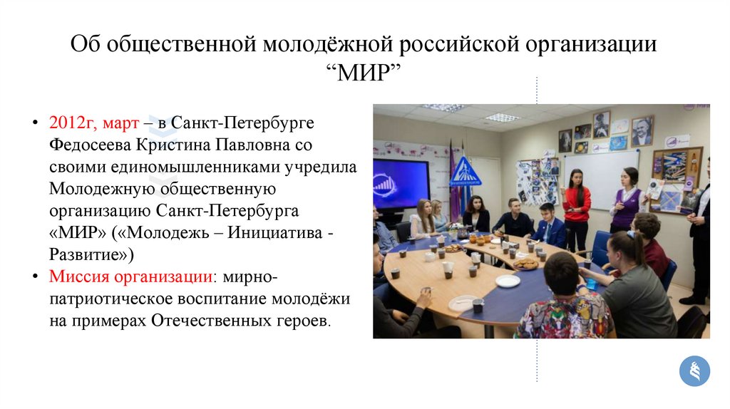 Об общественной молодёжной российской организации“МИР”
