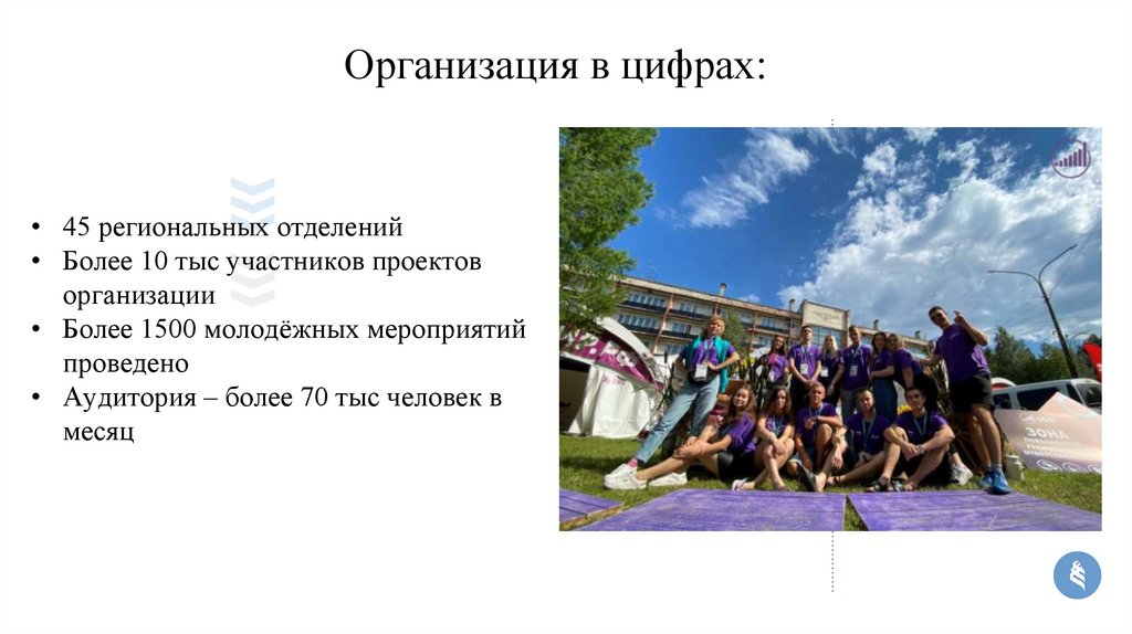 Организация в цифрах:• 45 региональных отделений