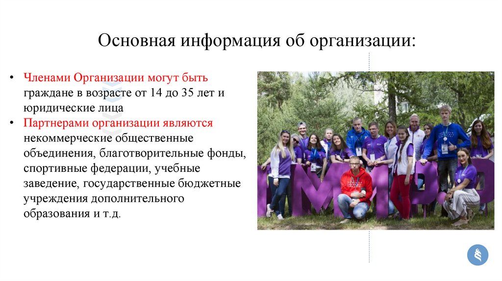 Основная информация об организации:• Членами Организации могут быть