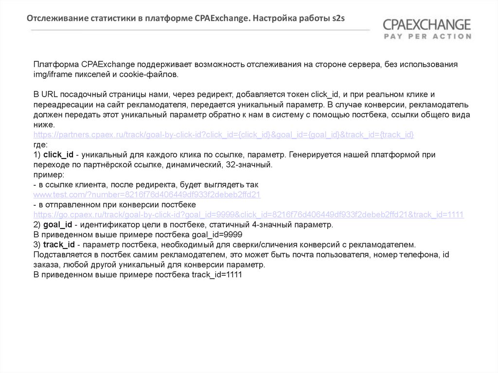 Отслеживание статистики в платформе CPAExchange. Настройка работы s2sПлатформа CPAExchange поддерживает возможность отслеживания на стороне сервера, без использования