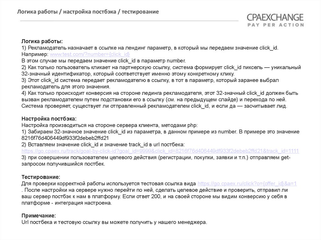 Логика работы / настройка постбэка / тестированиеЛогика работы:
