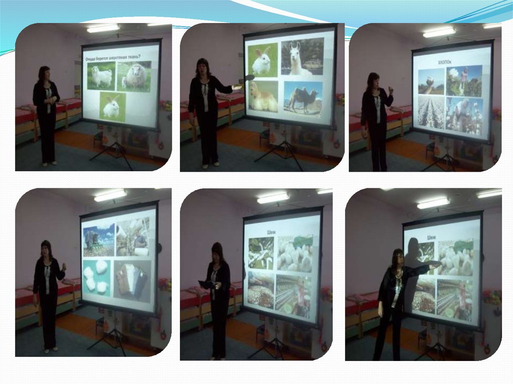 Задачи педагогической деятельности:учить детей называть и узнавать различные виды ткани